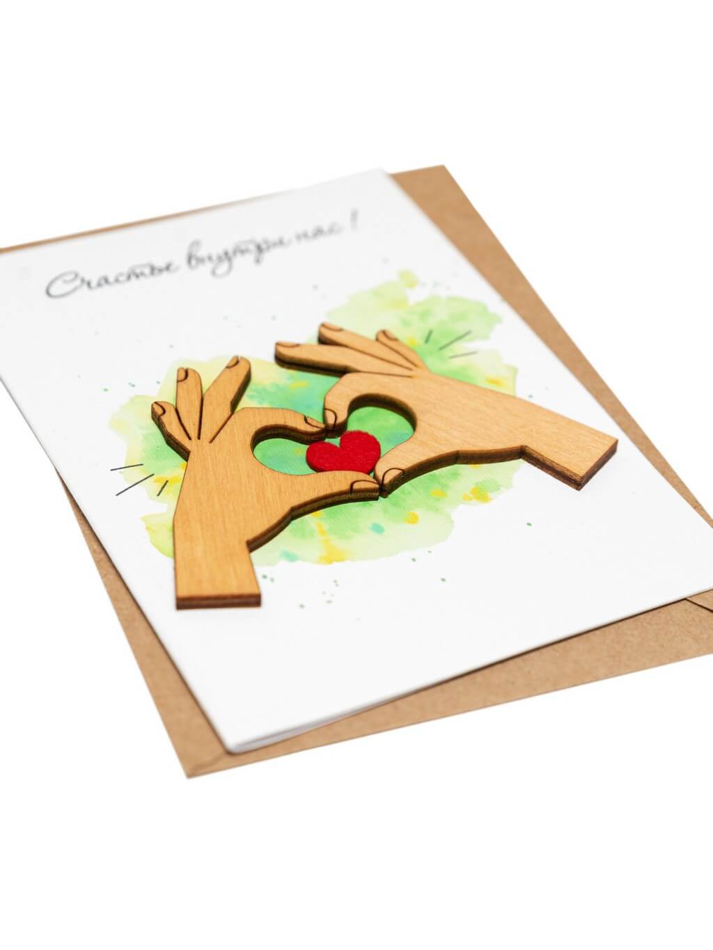 Все наши открытки ручной работы изготовлены из экологически чистых материалов: дерево, картон, фетр, бумага. Вместе с открыткой в комплекте идет крафтовый конверт формата С6. Размер открытки в сложенном состоянии: 10,5 х 15 см. Открытка двухсторонняя (внутри можно от руки написать поздравление). Поставляется в индивидуальном прозрачном пакете, который защищает изделие от загрязнений.