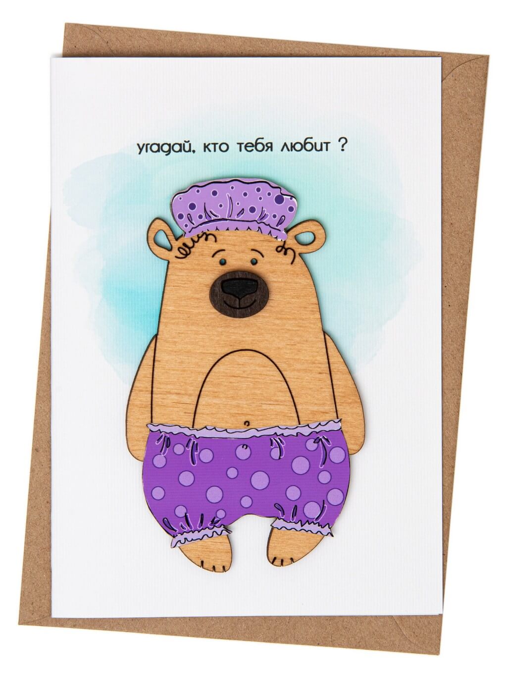 Все наши открытки ручной работы изготовлены из экологически чистых материалов: дерево, картон, фетр, бумага. Вместе с открыткой в комплекте идет крафтовый конверт формата С6. Размер открытки в сложенном состоянии: 10,5 х 15 см. Открытка двухсторонняя (внутри можно от руки написать поздравление). Поставляется в индивидуальном прозрачном пакете, который защищает изделие от загрязнений.