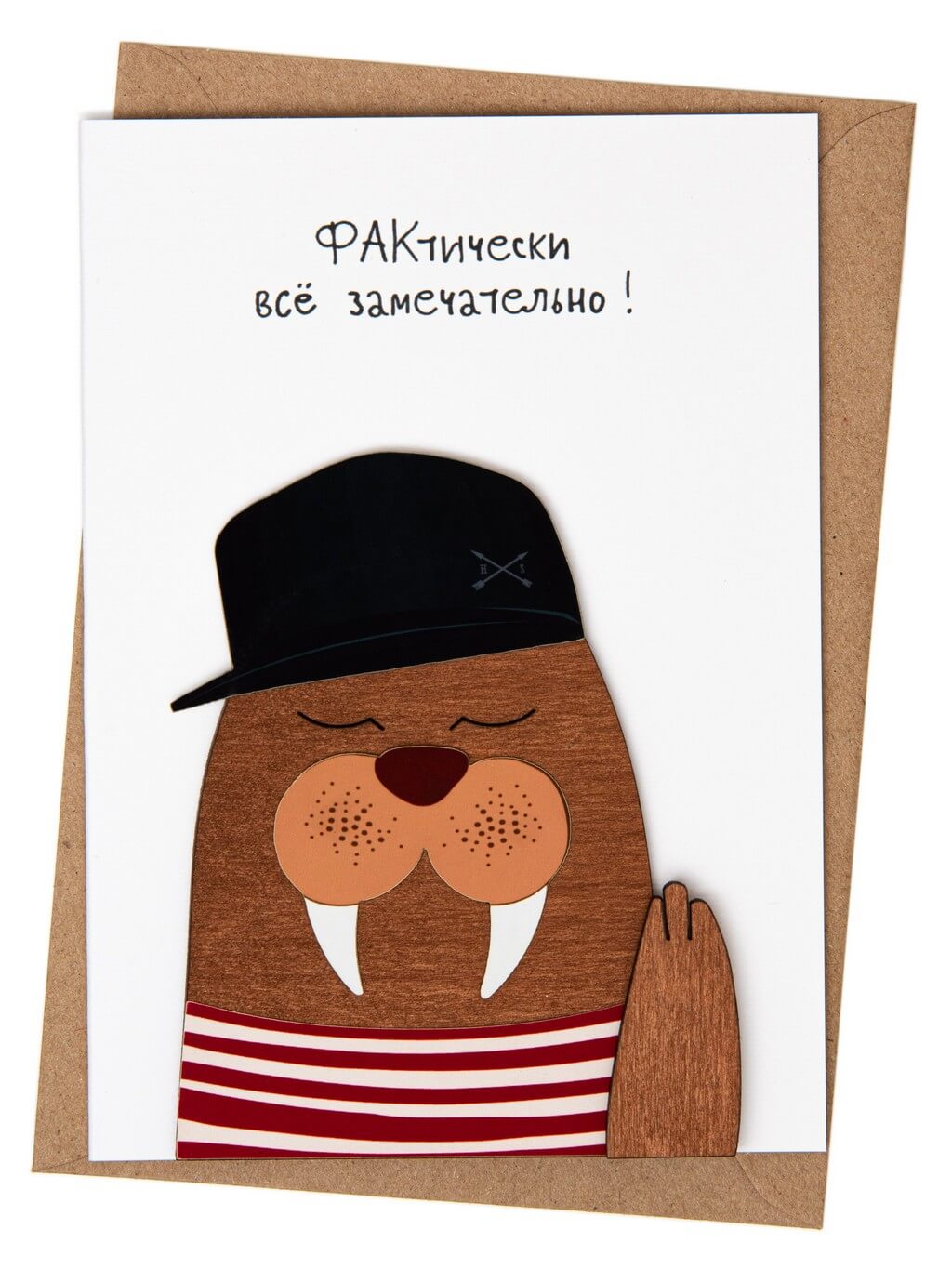 Все наши открытки ручной работы изготовлены из экологически чистых материалов: дерево, картон, фетр, бумага. Вместе с открыткой в комплекте идет крафтовый конверт формата С6. Размер открытки в сложенном состоянии: 10,5 х 15 см. Открытка двухсторонняя (внутри можно от руки написать поздравление). Поставляется в индивидуальном прозрачном пакете, который защищает изделие от загрязнений.